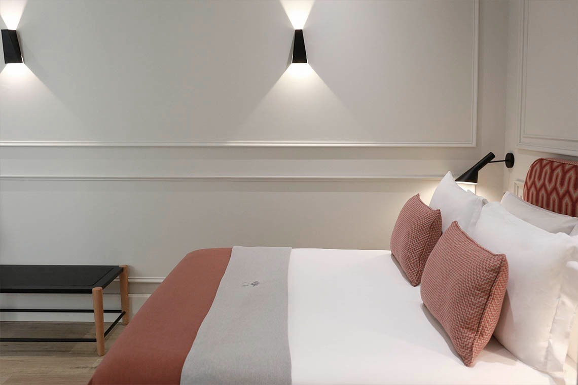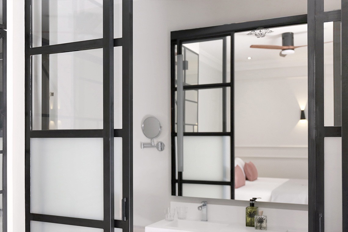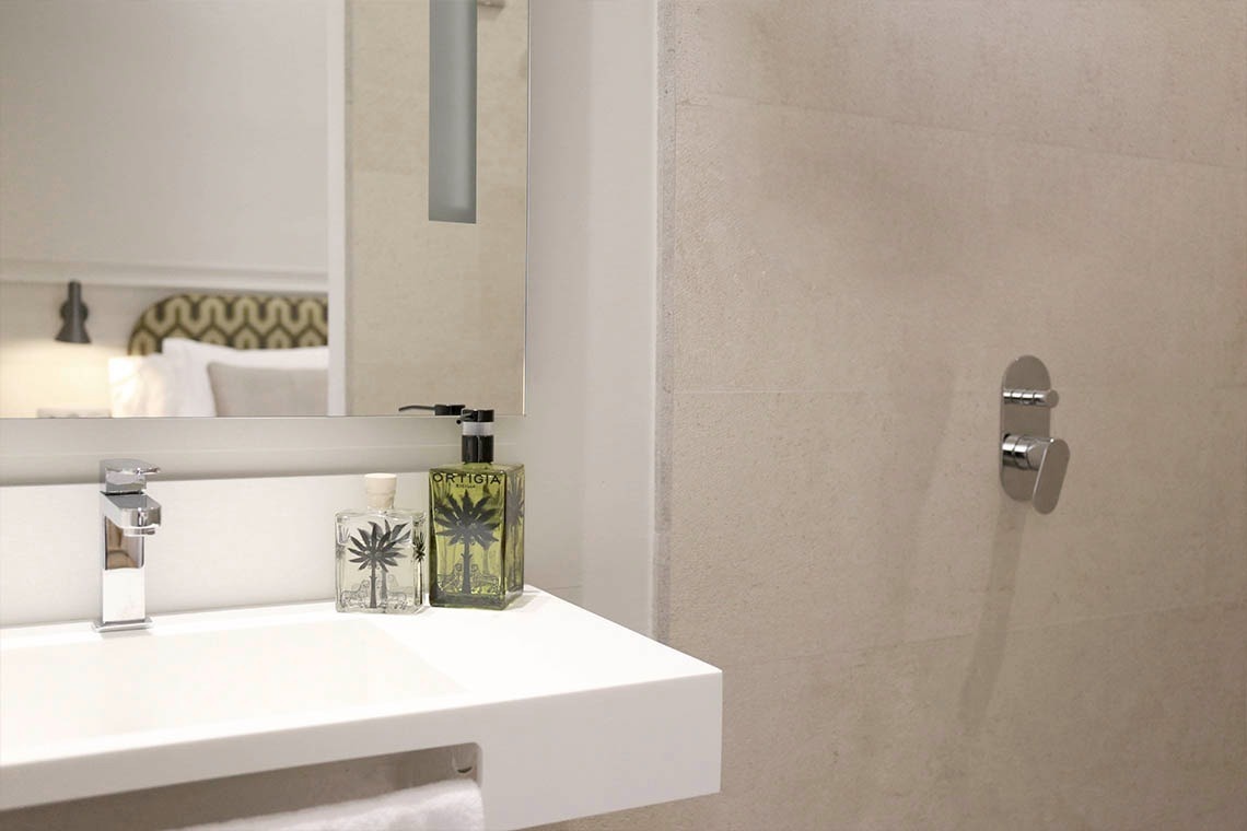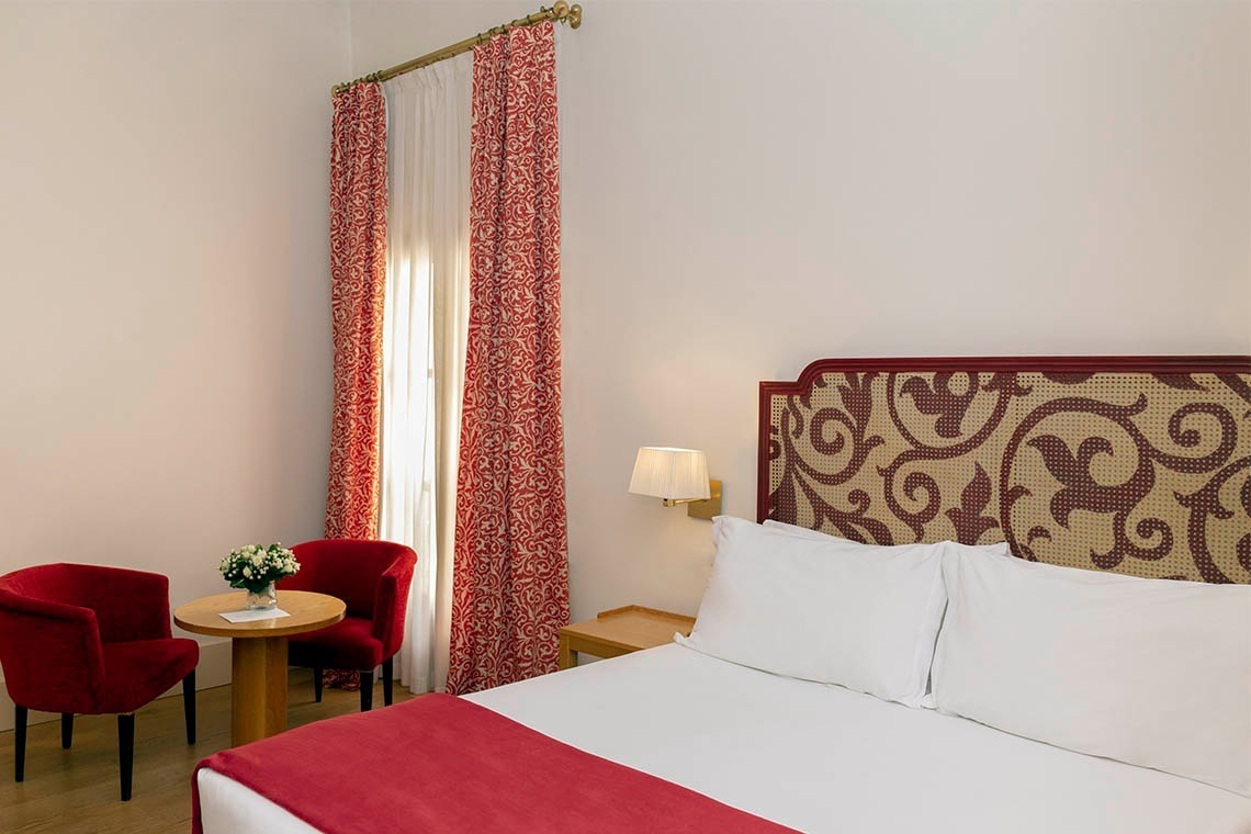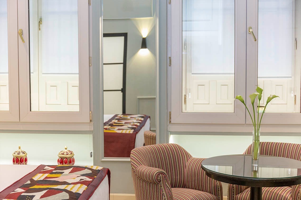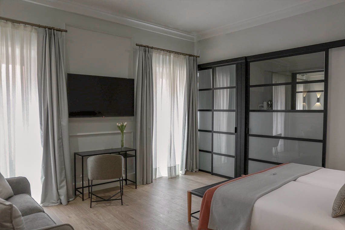 The 30 sqm suites at Casa Romana are ideal for those travelers looking for exclusive comfort in a spacious and welcoming space. Classic Domus Suite, they have a private terrace with views of the roofs of Seville; and Suite Villa, with a contemporary design, have balconies facing one of the most iconic streets of the city. Inside, the living area, furnished with comfortable sofas and designer accessories, is ideal for relaxing in harmony. Perfect to spend a unique quality time without leaving Casa Romana.